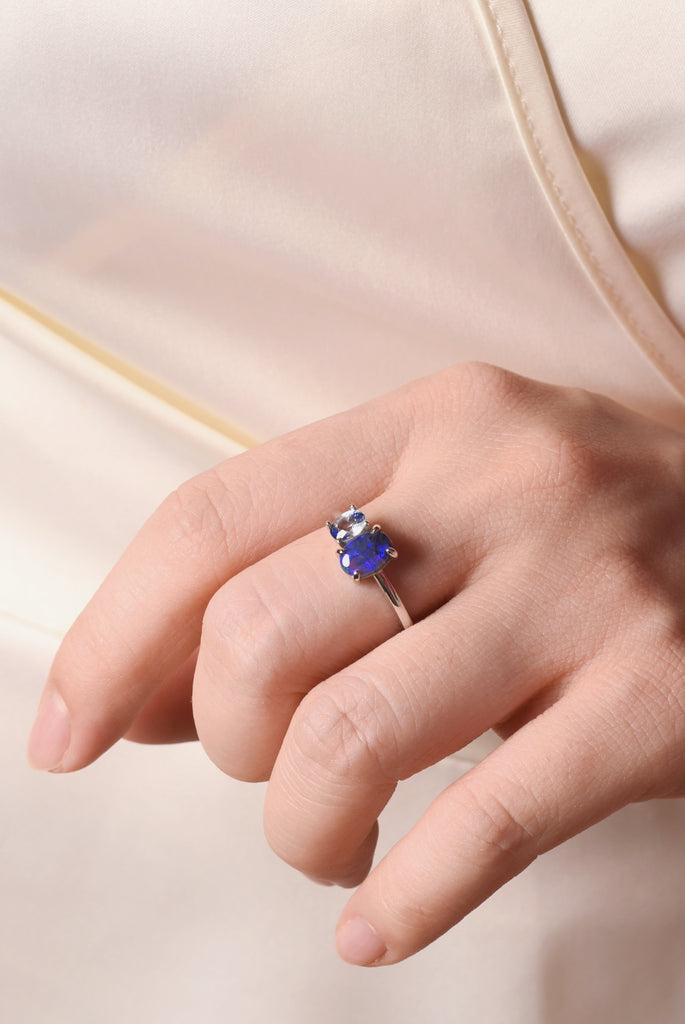Elysia 白金鑲半黑蛋白石及藍寶石戒指